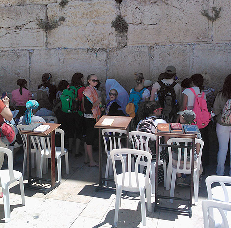 Landskronagymnasterna och deras tränare Jenny Engdahl hann även med att se sig om i Jerusalem där de bland annat var vid klagomuren. Foto: Privat