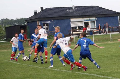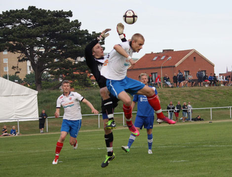Andreas Borg var som vanligt duktig i hemmamålet. Här är han stark i en luftduell. Foto: Leif Hammarström.