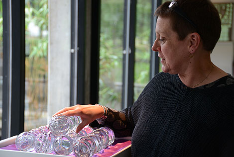 Helena Kågebrand jobbar med laboratorieglas.