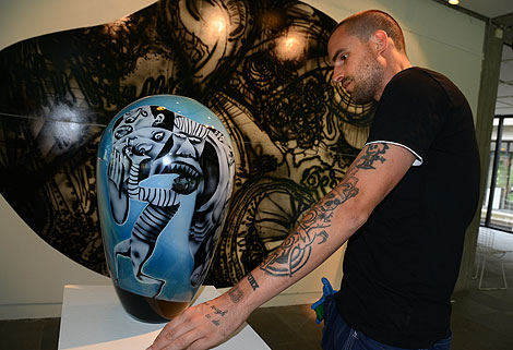 Gemensamt dock för flera av konstnärerna är att det låtit mästaren Micke Johansson blåsa deras verk.