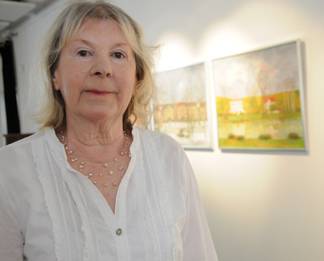 Britt Frykstrand Fajersson har hängt fyra akvarellmålningar på väggen i caféet men det är inte första gången hon ställer ut i huset. Faktum är att det var på Landskrona museum som hon, 1978, hade sin första separatutställning.