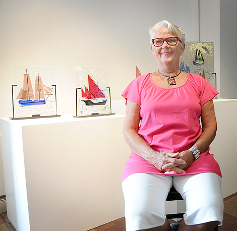 Den fjärde och sista utställaren är Rose-Marie Bengtsson som ställt fyra glasskulpturer på ett bord, samtliga föreställande båtar.