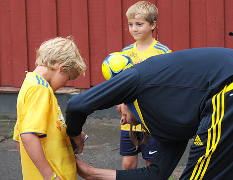 Det blev till att skriva många autografer för Jonas Olsson innan onsdagens träningspass.