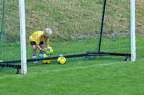 Fotboll spelas inte bara med fötterna. Nickövningar hör också till.