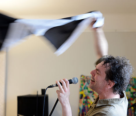 – Jajaja. Tjata!. Har någon sett mina solbrillor, hojtar Svegis och försvinner tillbaka in i replokalen.