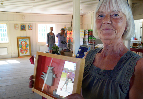 – Här är alltid folk men om man vill köpa något av konstverken så får man kontakta konstnärerna själv. Här finns kontaktuppgifter, säger Barbro Sjöholm.