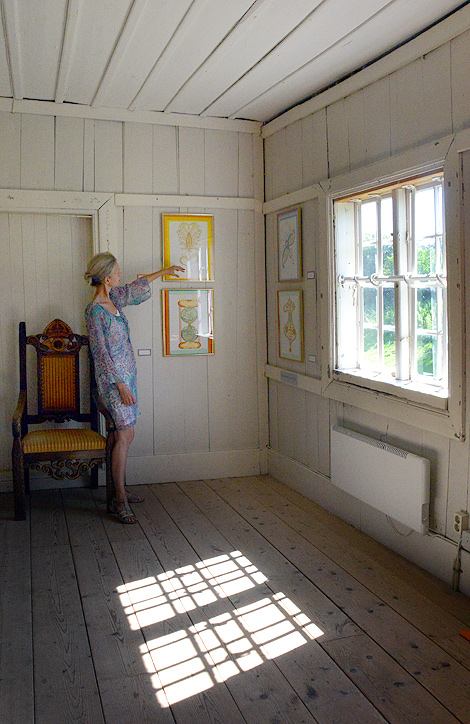 Det är svårt att tro när man tittar på hennes verk men det är faktiskt första gången som Anna-Carin Cirenajwis ställer ut sin tavlor. Vi undrar om i kolonisternas tavlor kunnat se likheter med deras trädgårdar.