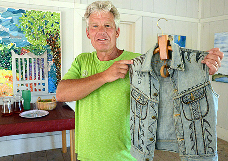 Thor Johansen är en driven tecknare och illustratör. På utställningen har han även med sin gamla Queen jeansväst.