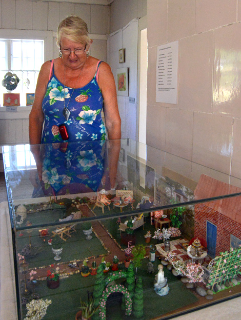 Ett annat verk som fångar blicken är en modell av en trädgård, skapad av Barbro Sjöholm.