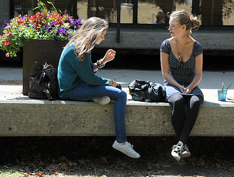 Fransyskorna Heol Chatelin, och Tindra David slog sig ner på avsatsen till konsthallen och tecknade.