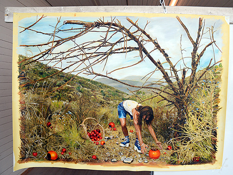 Hennes tavlor är inget för den trånga hallen då de får betraktas som förhållandevis stora.