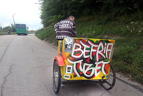 Landets kanske mest berömde uteliggare Carl Wachtmeister var på plats på Ven med sin cykeltaxi. På lördagen hade han fått åka in till fastlandet för att fixa ett nytt däck men innan lagningen påbörjades knep han hela uppförsbacken vid Bäckviken trots punka på hjulet.