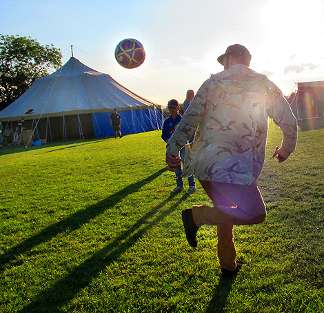 Genaral Knas värmde upp med lite fotboll tillsammans med en del av öns unga.