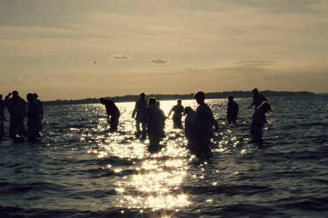 Avslutningsvis blev det uppställning i vattnet. Foto: Anita Enberg.