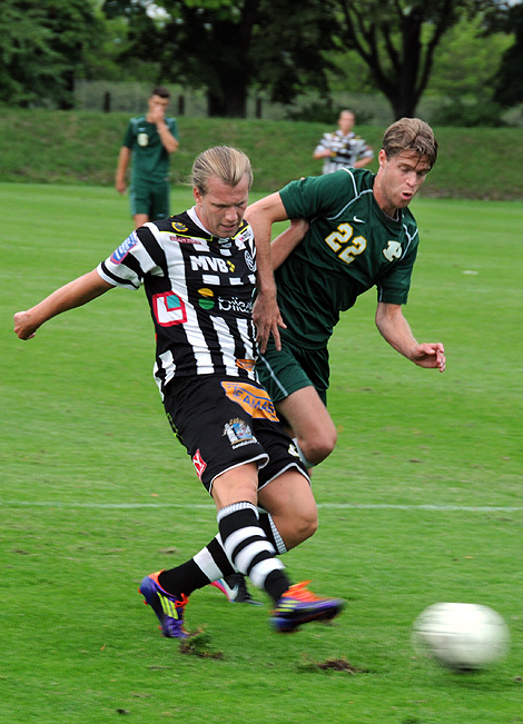 – Jag har tidigare spelat i BoIS j-lag och varit och nosat på en plats i a-truppen men för drygt ett år sedan åkte jag till USA för att studera och jag är inne på mitt andra år nu, säger Elias Johansson som spelade högerback i den första halvleken.