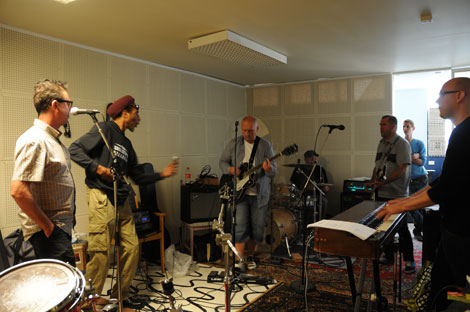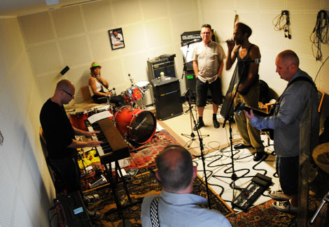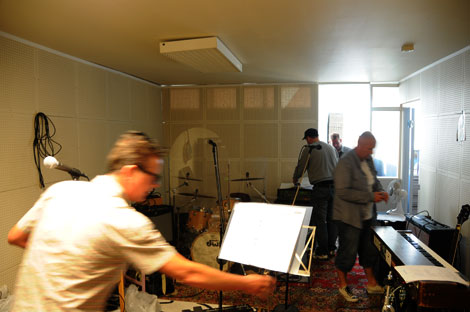 Det var fart och fläkt i replokalen för att få rätt på alla sladdar innan repetitionen.