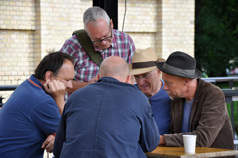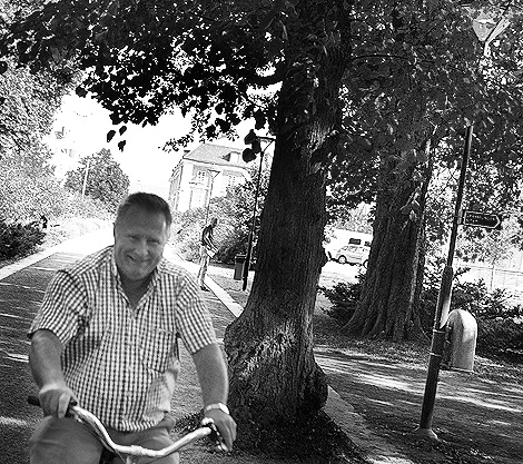 På slaget klockan 17 på söndagen plockade Göran Nyström ner banderollerna men hann innan dess utlova att det blir en fotofestival även nästa år. I förgrunden kommer Dennis Brandt cyklande.