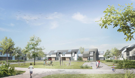 Såhär tänker sig arkitekterna den del som ligger öster om Erikstorpsvägen. Dessa byggs av HSB Landskrona.