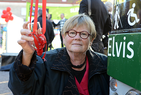 Trådbussarna firade 10 år i Landskrona och Birgitta Thunberg döpte det senaste tillskottet till Elvis.