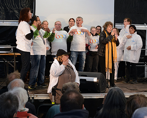 Siw Malmkvist sjöng ”Ingenting går upp mot gamla Skåne” och teckenkören tolkade.