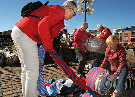 Redan strax innan lunch på fredagen var halsduksgeneral Inger Rosvall i full gång med att mäta världens längsta halsduk i Landskrona.