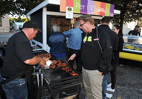 Cityföreningens ordförande Benny Elmen var väldigt nöjd med dagen och arrangemanget när han gjorde en paus för en korv med bröd hos Per i Viken.