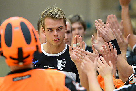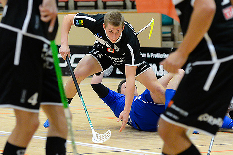 Falcons gjorde i förra veckan klart med ett nyförvärv från Jönköpings IK i Svenska Superliga. Hemvändaren Fredrik Glans (13) hade inga problem att komma tillrätta i laget. Foto: Ulf Bjarke