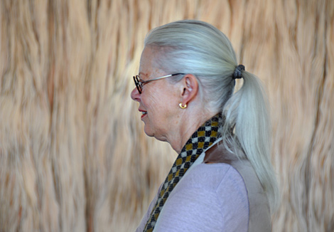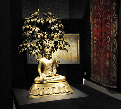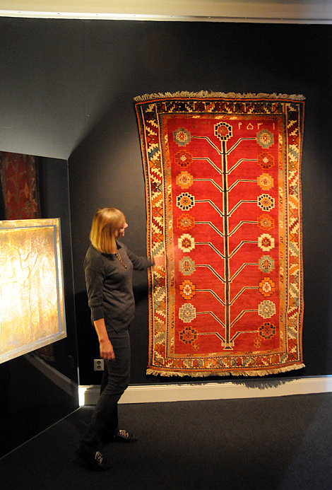 På museet handlar det om träd i olika skepnader. Här visar Anneli Oxenstierna en matta man lånat in av Halldens Mattor.