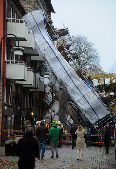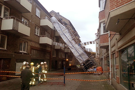 Eftermiddagens första larm kom från Nygatan där en byggnadsställning rasat.