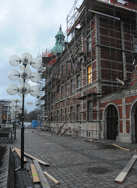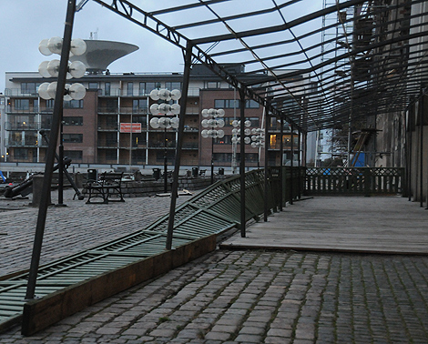 Utanför Tranchellska huset låg bråte och brädor på trottoaren.