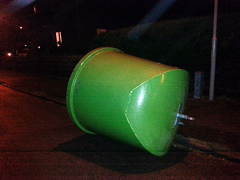 På Exercisgatan låg denna ”glasigloo” som rymt från sin plats på parkeringen till Exercisfältet.