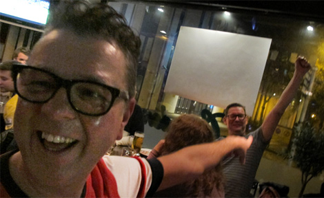 – Att det skulle komma så många Arsenalfans, trodde jag knappast, sa Mikael Salonen och blickade ut över alla rödvitklädda som följde matchen via olika TV-skärmar.