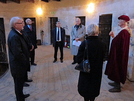 Färden fortsatte till citadellet där ambassadören fick en historisk guidning över de olika epokerna i slottets historia. Där sammanstrålade också gruppen med produktionsbolaget för den pågående filminspelningen av Zon 261, som håller på att göra de avslutande inomhusscenerna klara där.