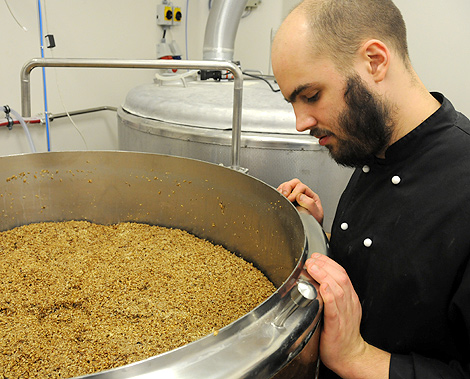 – Hur det ska smaka står inte att läsa någonstans. Det lär man sig genom att brygga och testa sig fram och jag har bryggt en hel del hemma, säger Simon Frennberg.