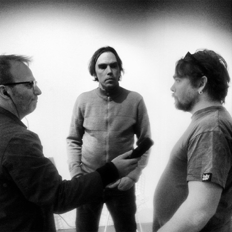 Bröderna Oskar och Albin Ponnert intervjuas om utställningen av Sveriges Radios kulturredaktion.