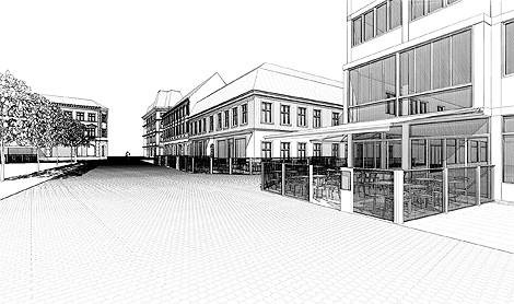 Fellinis och Plan B:s uteserveringar kommer även framledes att gå in en bit på Nygatan. Illustration: Bengt Husritare AB