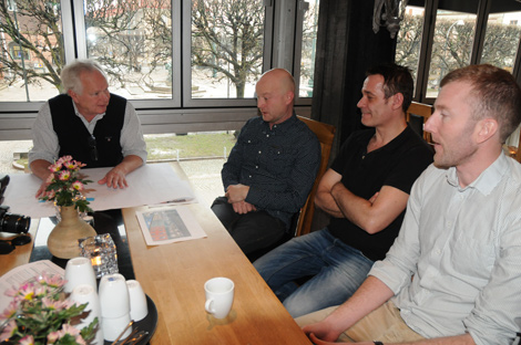Peter Siilak är kommunens tekniske chef och på bilden visar han ritningarna över Rådhustorget och dess uteserveringar för krögarna Micke Magnér på Speakers Corner, Patrik Holmberg på Fellini och Jonas Westerberg på Café 261.