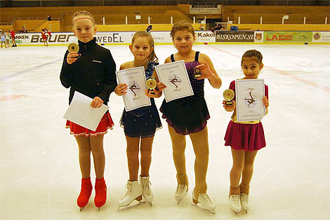 – För Emina, Maya och Melina var det tävlingspremiär, men det märktes inte då de utförde sina program med stor säkerhet, säger Sussie Sörensen på GF Idrott Konståkning.