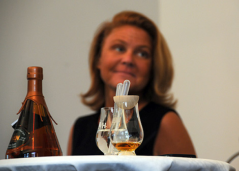 – Utspädd, med en femtedel vatten går doften från saltlakrits över i söt lakrits. Dofter av Cabernet Sauvignon som härrör sig från fatlagringen visar sig och aromer av mörk choklad och mandel lyfter rök och torvdofterna. Smaken är mjuk och rund med ett ungdomligt friskt bett som påminner om fläderblommor och rök kombinerat med vaniljfudge. Eftersmaken är ihållande med klara röktoner och antydan till tjära. Den är oljig, frisk och väldigt mjuk.