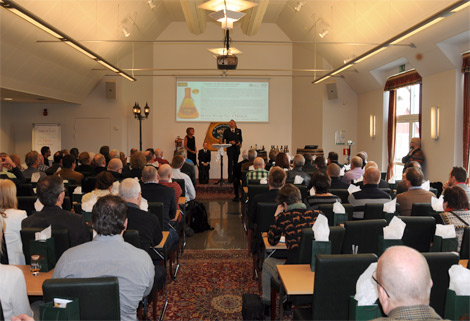 – Det är fantastiskt roligt att se att salen nästan är full. Det här är en glädjens dag, sade Henric Molin, som är den drivande kraften bakom destilleriet.