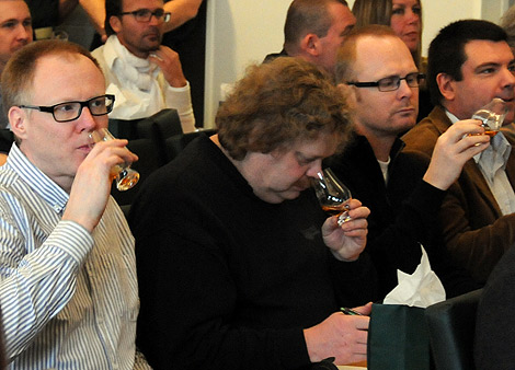 Det var många whiskykännare på plats på Backafallsbyn och de använde såväl ögon, näsa och mun för att bedöma den nya whiskyn.
