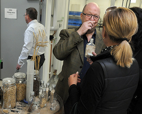 Man kunde även lära sig mer om basvarorna. Här luktas det på malen malt.