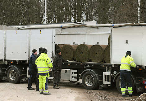 – Förhoppningsvis är hela mattan på plats på söndag och sedan är det bara att ösa på med värmen så att gräset fäster i underlaget, avslutar Magnus Persson och fortsätter att rulla ut gräsmattan.