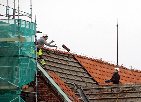 Arbetet, som väntas pågå under resten av terminen, omfattar bland annat nytt takpapp, nya läkt och nya takpannor.