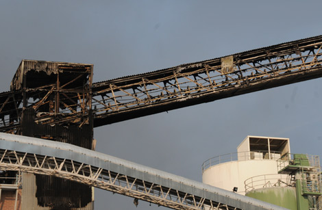 Flera transportband mellan de oliga byggnaderna har brunnit.