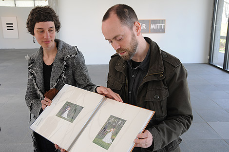 Nina Slejko Blom och Conny Blom arbetar individuellt men ett av konstverken har de gjort tillsammans. Det är ett fotoalbum med bröllopsbilder och med ansiktena bortskrapade.