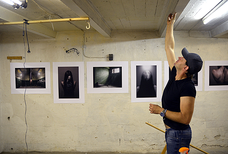 – Det är en vidareutveckling av det jag visade på Kulturnatten, säger han om sina bilder på skyltdockor som ser levande ut. Eller är dom rent av är det? Bilderna är suggestiva och fotograferade i befintligt gatlamps- och månljus.