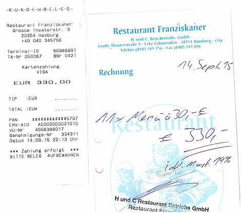 När det på måndagkvällen var dags för lite Bayersk ”Gemütlichkeit” äntrade sällskapet centralt belägna Restaurant Franziskaner. Här intogs en trerättersmiddag till 470 kronor kuvertet. Därtill serverades en dyckesmeny som på det handskrivna kvittot redovisas som 11 x meny. Landskrona Direkt har efterfrågat en specifikation på kvittot.