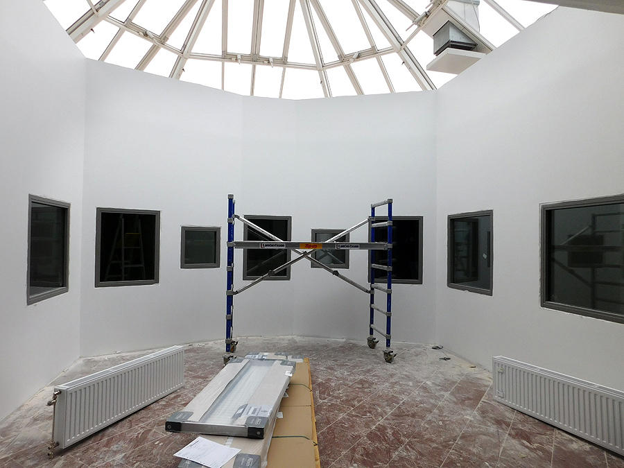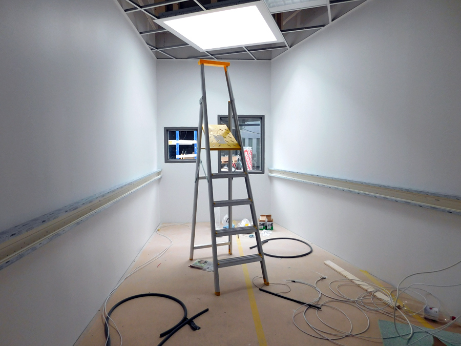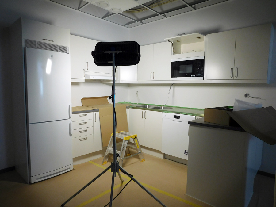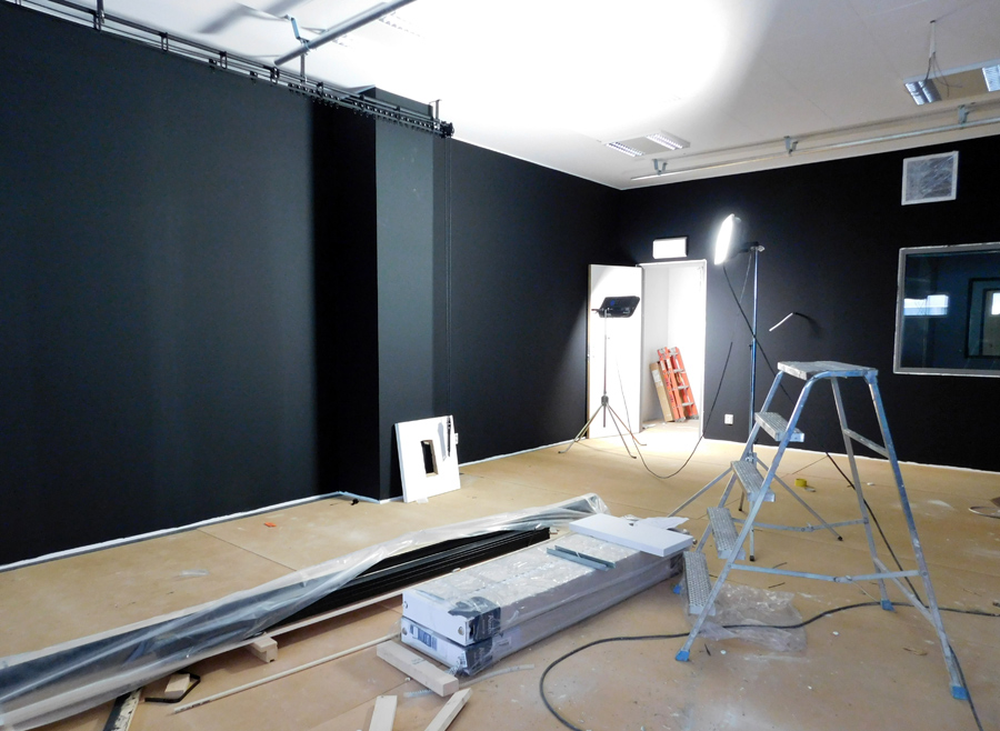 Alla reprummen är ljudisolerade. Foto: Natalie Hultgren.Filmrummet sticker ut med sina gröna väggar. Foto: Natalie Hultgren.Kulturskolan kommer att ha en så kallad blackbox i lokalerna, det vill säga en scen där musik och teater kan framföras. Foto: Natalie Hultgren.Läktarplatser vid blackboxen. Foto: Natalie Hultgren.Även teaterrummet är svartmålat. Foto: Natalie Hultgren.Den gamla ljusgården i Gallerian är bevarad. Foto: Natalie HultgrenPersonalens nya kök. Foto: Natalie Hultgren.Det kommer även att finnas dansrum som här på bilden men även omklädningsrum, målarrum och kontor på Kulturskolan i framtiden. Foto: Natalie Hultgren.