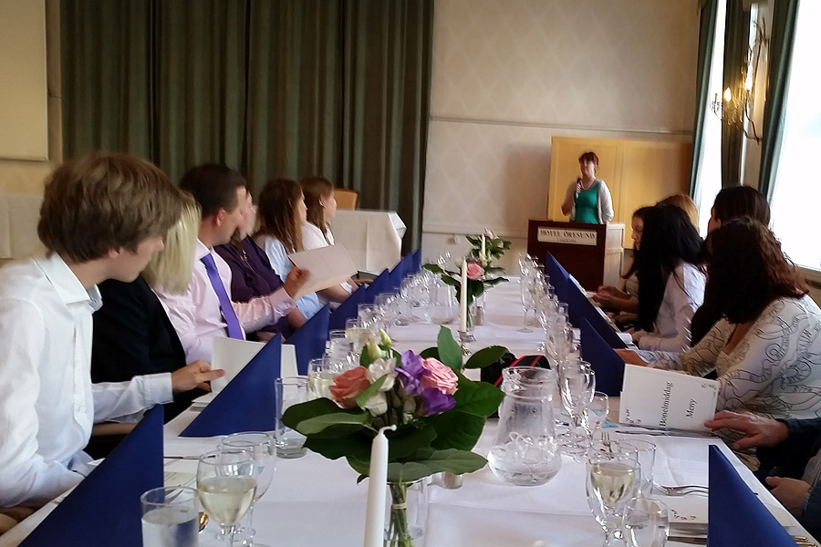 I samband med middagen som hölls i fredags berömde Pia Sönnichsen sina adepter, åtta till antalet.